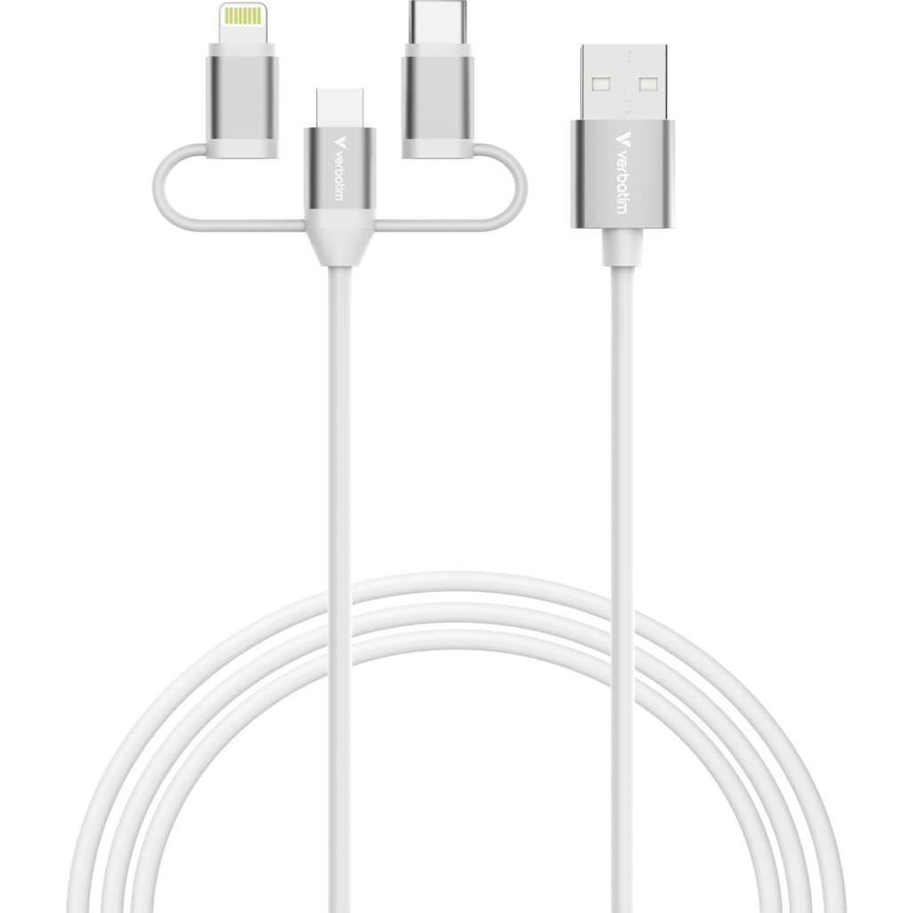 - Verbatim Essentials Sync & Charge USB-A to Micro-B, USB-C, Lightning Cable
