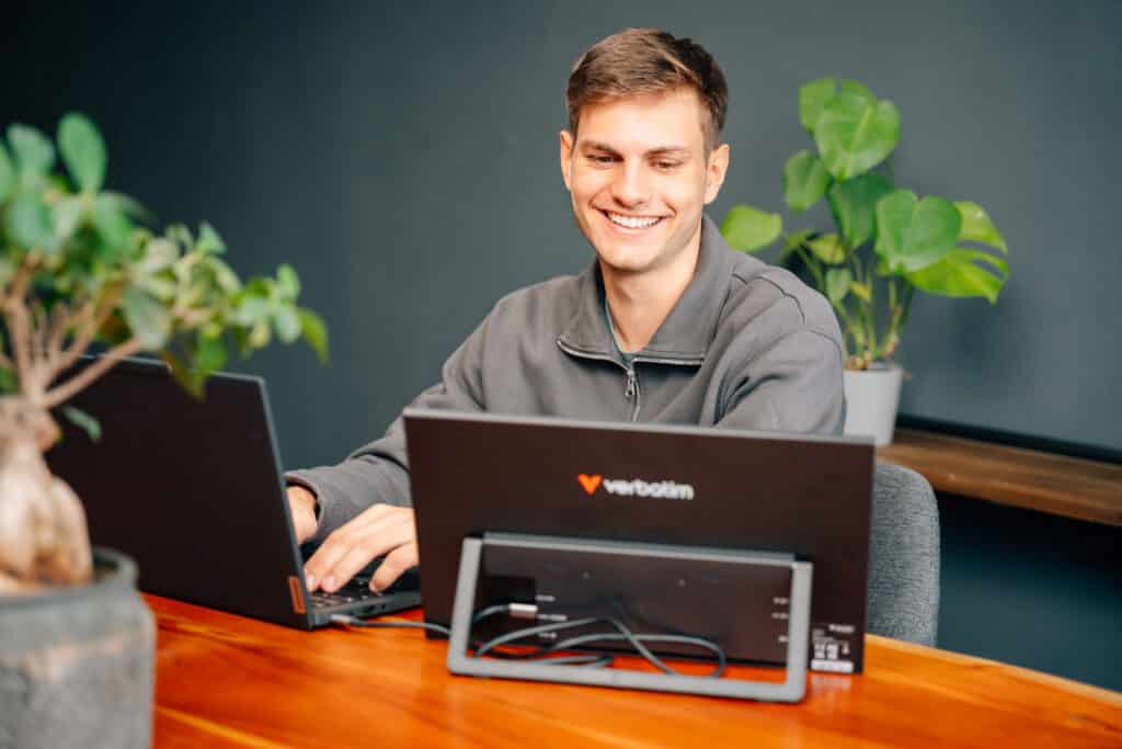 Experience effortless control with the Verbatim LIGHT Series 15.6” Touchscreen Portable Monitor. With full 10-point capacitive multi-touch functionality, this compact display lets you swipe, tap, zoom, and draw directly on the screen, making it ideal for designers, professionals, and students alike. The plug & play USB-C connection streamlines your setup – one cable handles power, video, and touch input with ease.