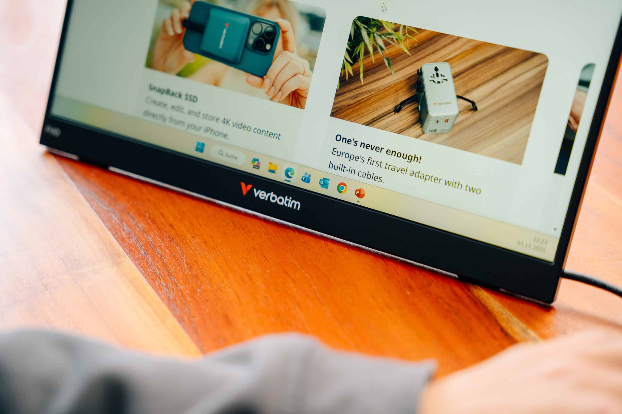 The Verbatim Portable Touchscreen Monitor Light Series offers all the functionality of our premium touchscreen monitors in a slimmer, lighter, and more travel-friendly design.