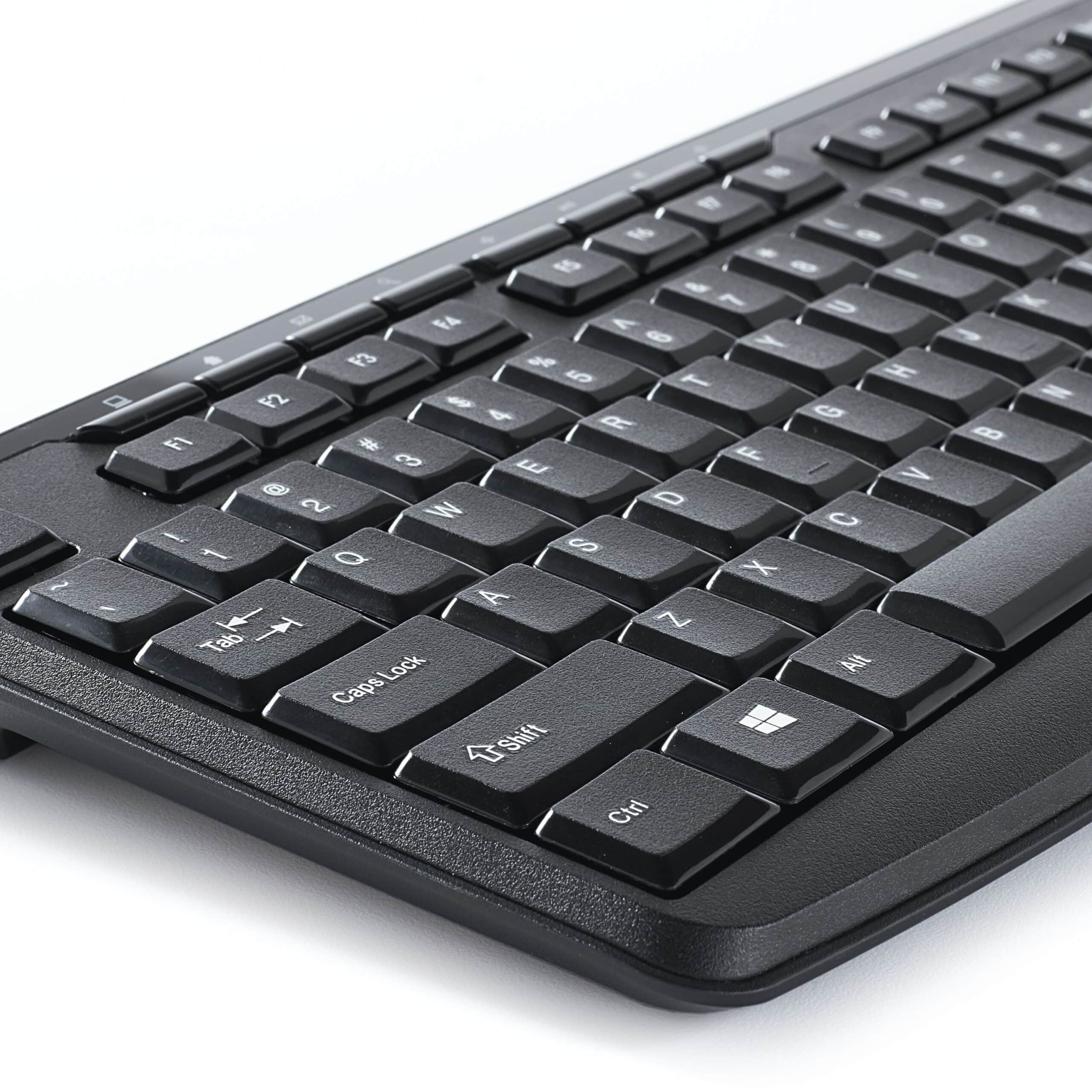 The wireless 2.4GHz connection ensures smooth, lag-free performance, while the plug-and-forget nano receiver is small enough to stay connected without getting in the way. The Silent Mouse is equipped with advanced Blue LED technology, giving you precise control on a wide range of surfaces – from your desk to a glass tabletop or even a granite counter. The Silent Keyboard combines a slim, space-efficient design with a full numeric keypad and full-size function keys, making it as practical as it is quiet.