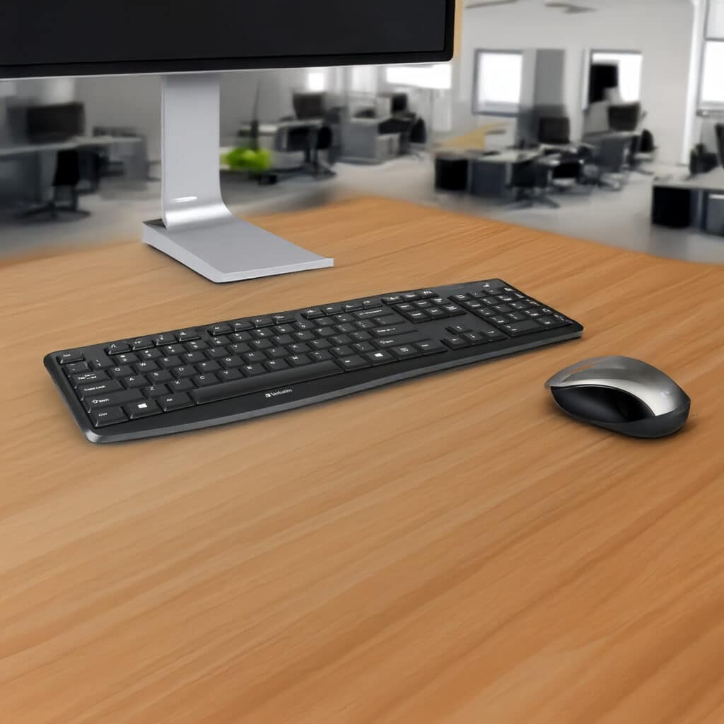 Experience a quieter way to work with the Verbatim Silent Mouse and Keyboard Combo. Designed with innovative Silent Technology, these devices use silent click switches and rubber key covers to eliminate distracting click sounds – perfect for shared workspaces, late-night projects, or anyone who prefers peace and quiet.