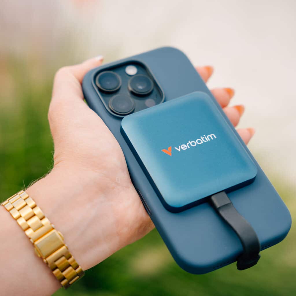 The Verbatim SnapBack SSD combines portability, speed, and smart connectivity to make mobile workflows effortless. By recording directly to the drive, connecting securely via MagSafe or the included ring, and offering lightning-fast file transfers, it keeps professionals productive wherever they work.