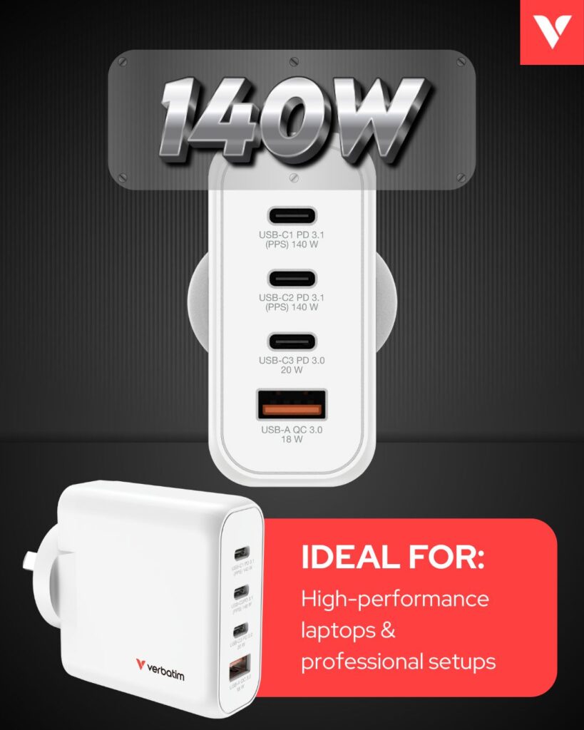 Verbatim’s GaN Charger range is designed for today’s charger-optional world: